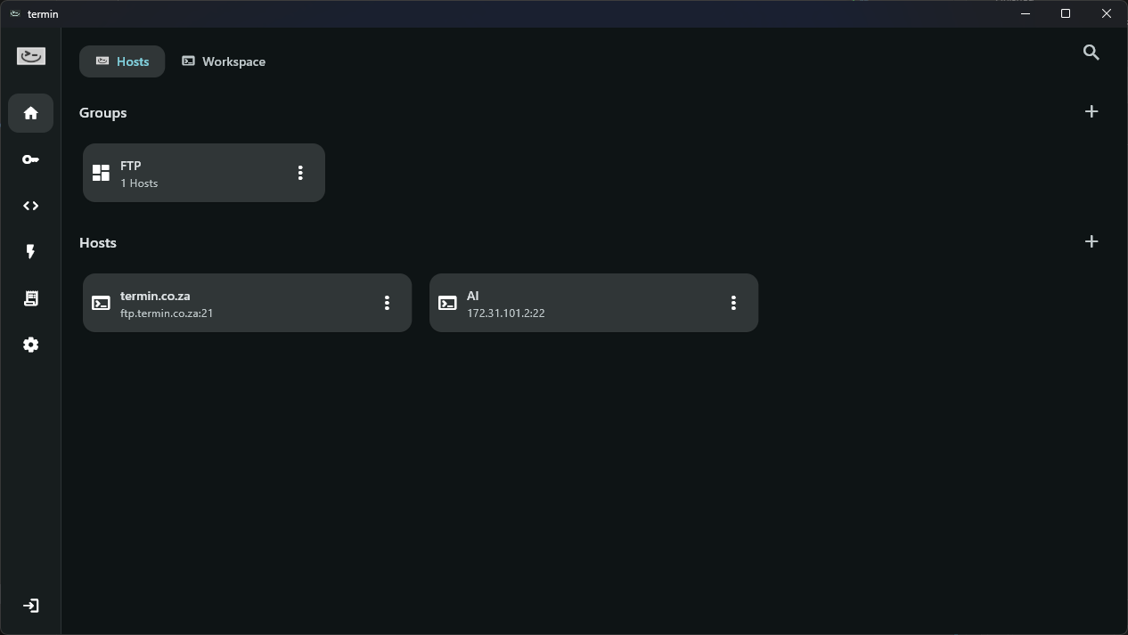 Save your connections securely and access them anytime accross devices. with team support and sharing hosts with synchronization coming to Termin soon.